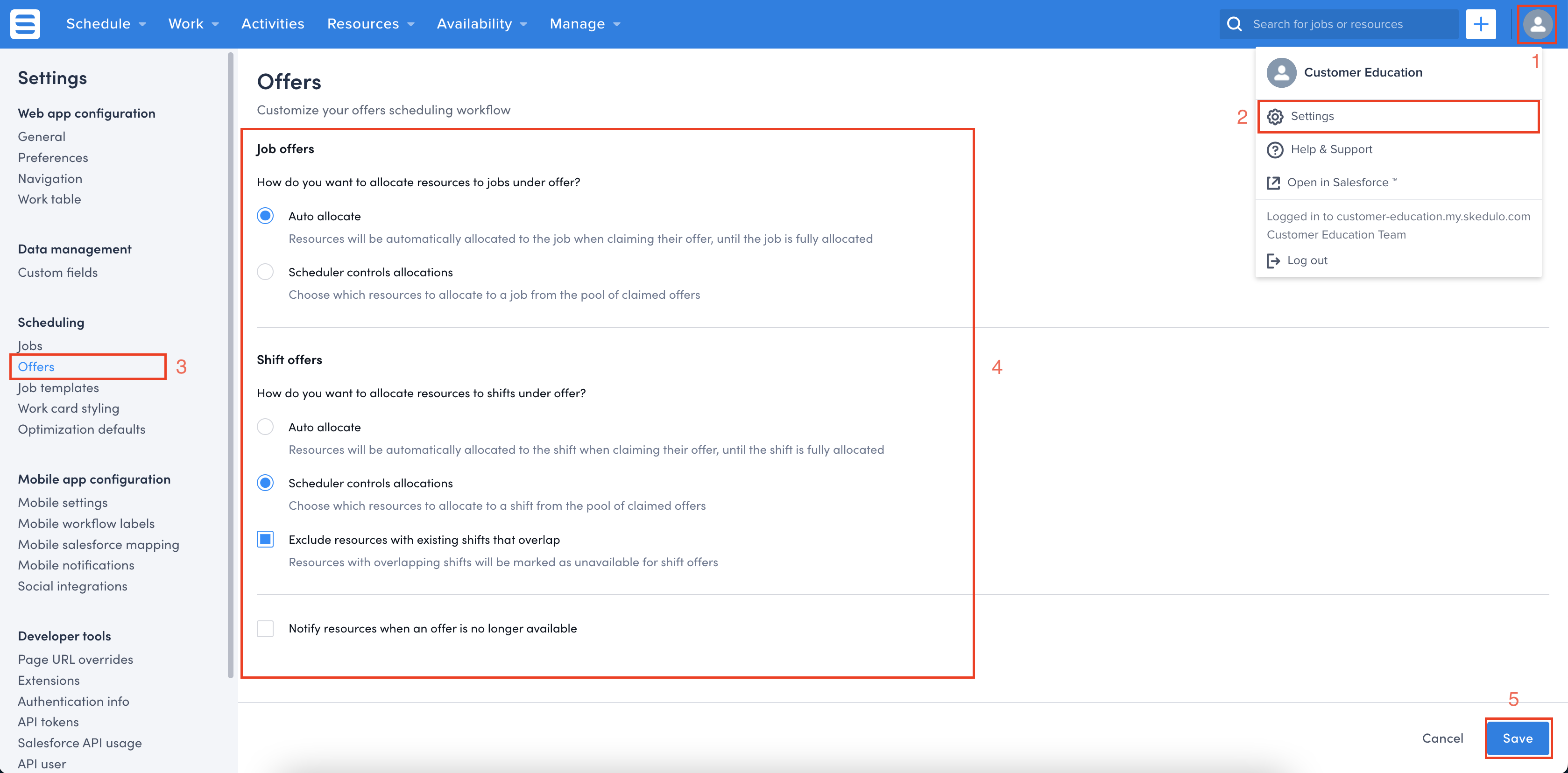 - If you select the setting ‘Notify resources when an offer is no longer available’ all the other resources who missed the offer will be notified.