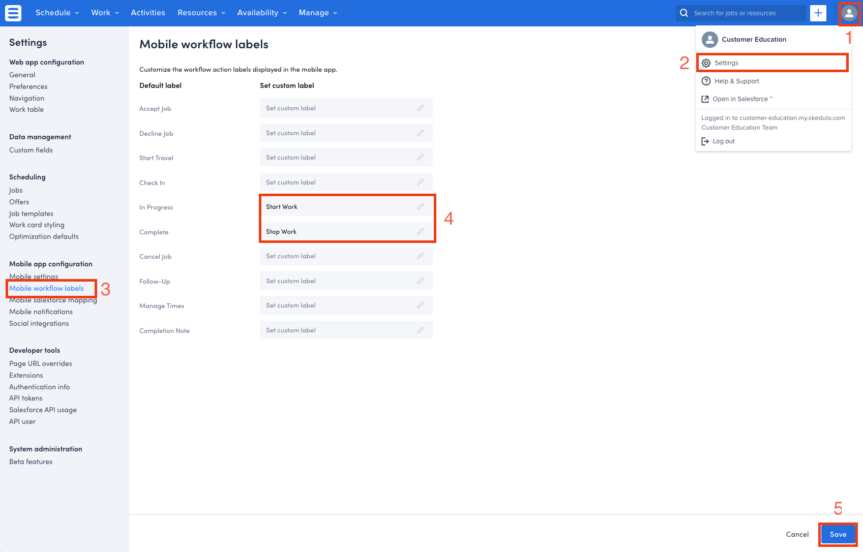 - Navigate to the ‘Mobile Workflow Labels’ settings screen